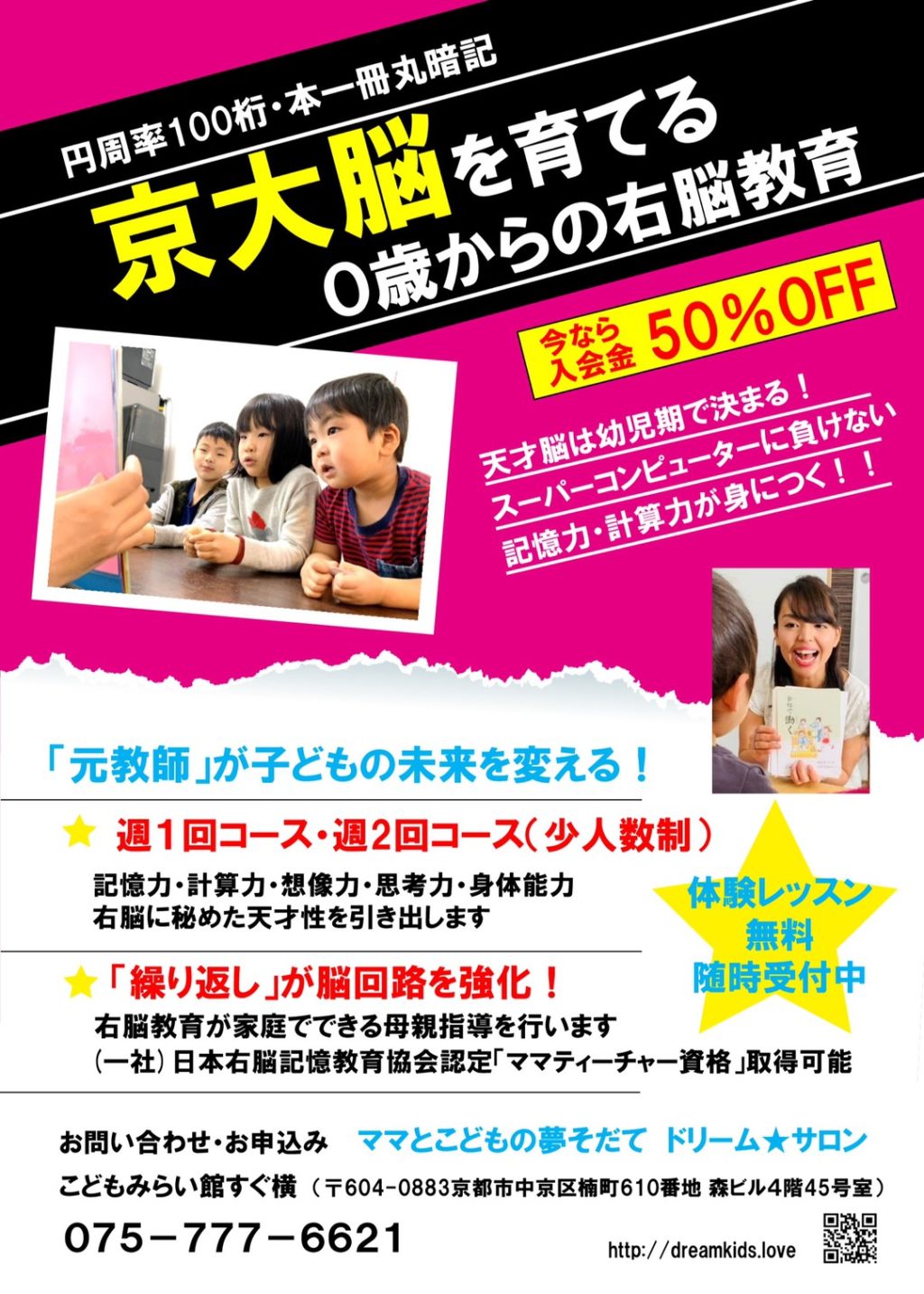 「家庭」「教育現場」「地域」から右脳教育を広げていく仲間を求めています。