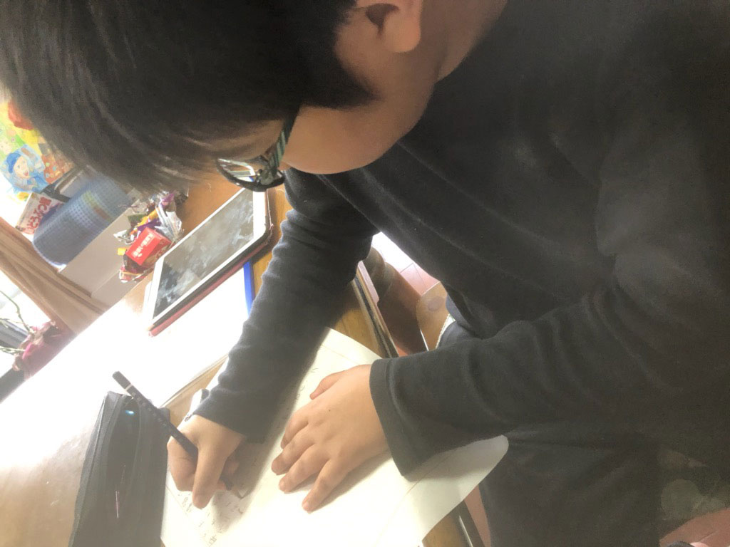 現在、小学6年生のKくん、夢中になって書いてますね!