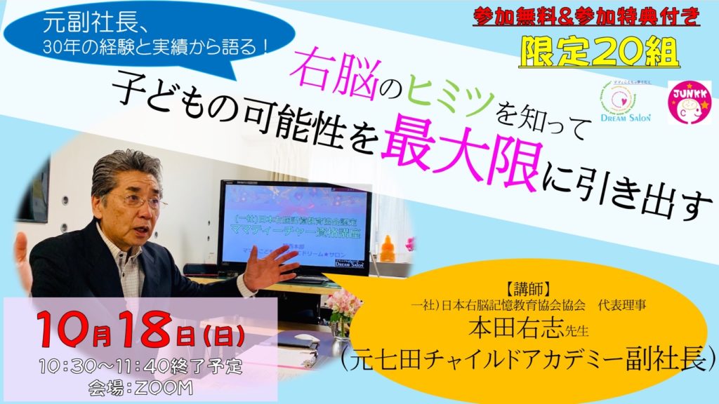 JUNKK一社)日本右脳記憶教育協会 関西統括本部ドリーム★サロン企画をご案内します。