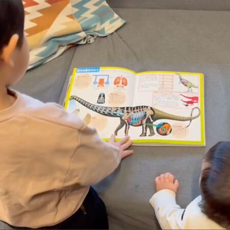 感染症対策のため自宅保育中のお兄ちゃんと、一緒に図鑑でお勉強しています♪