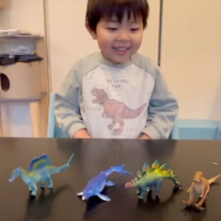 大好きな恐竜で写真記憶!好きなものだと集中力も高まります。