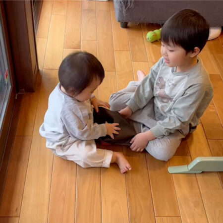 歩き始めた弟ちゃん1歳、お兄ちゃん4歳の刺激をもらってスクスク成長しています。